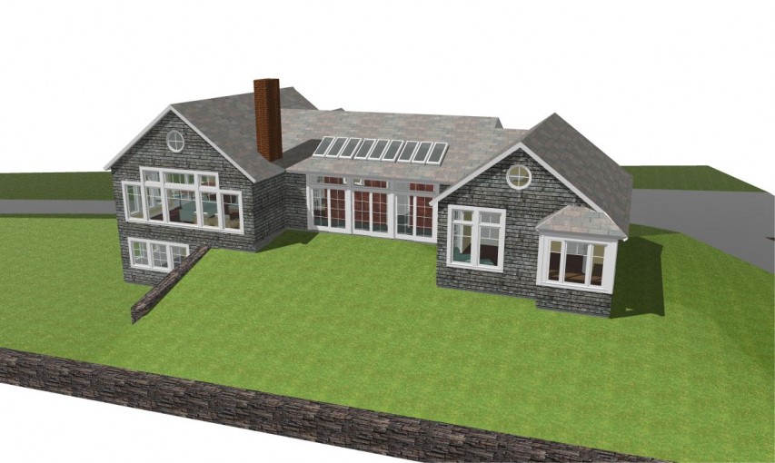 As in many similar situations on the coast, restrictions were many, from set-backs on all sides and a zoning ordinance that limited volume and height, to limits on the amount of impervious surface allowed. We recorded every bit of existing impervious area, modeled the existing volume of the house, and carefully mapped setbacks. Although defined by these limits, the new house sits naturally on its incredible site. It used every bit of allowable volume without, like many similar products, looking as though it had swallowed steroids. It is a house to be lived in and looked out of more than a house that asks to be looked at.