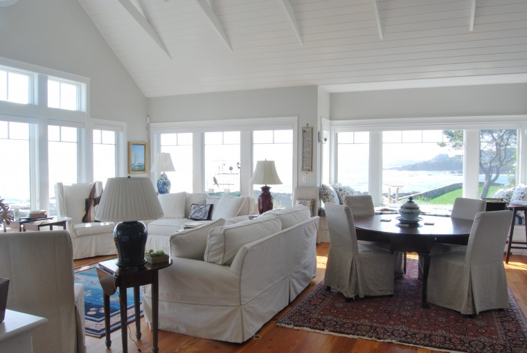 The owner’s tastes were simple and elegant. She asked for interiors in shades of white, to allow the colors of the ocean and the sky to dominate. She asked for a summery feel in a fully insulated storm-proof winterized structure. She asked for places to store and display her cherished collections and places to put away blankets and boats and food for her goats. The result is a house that is stamped with the personality of the owner, works like the architect intended, and fits the site as though it has always been there.